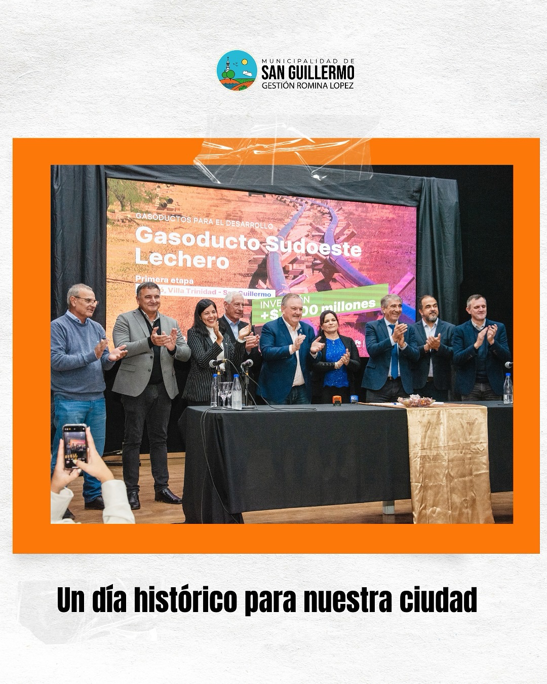 En un acto histórico liderado por el Senador Felipe Michlig, junto al Ministro de Gobierno e innovación Pública Fabian Bastía, el Presidente de ENERFE, Rodolfo Giacosa y los intendentes de las localidades beneficiadas, se realizó la firma por la adjudicación de la Obra Gasoducto Sudoeste Lechero 1era etapa, que comprende las localidades de Arrufó – Villa Trinidad – San Guillermo.