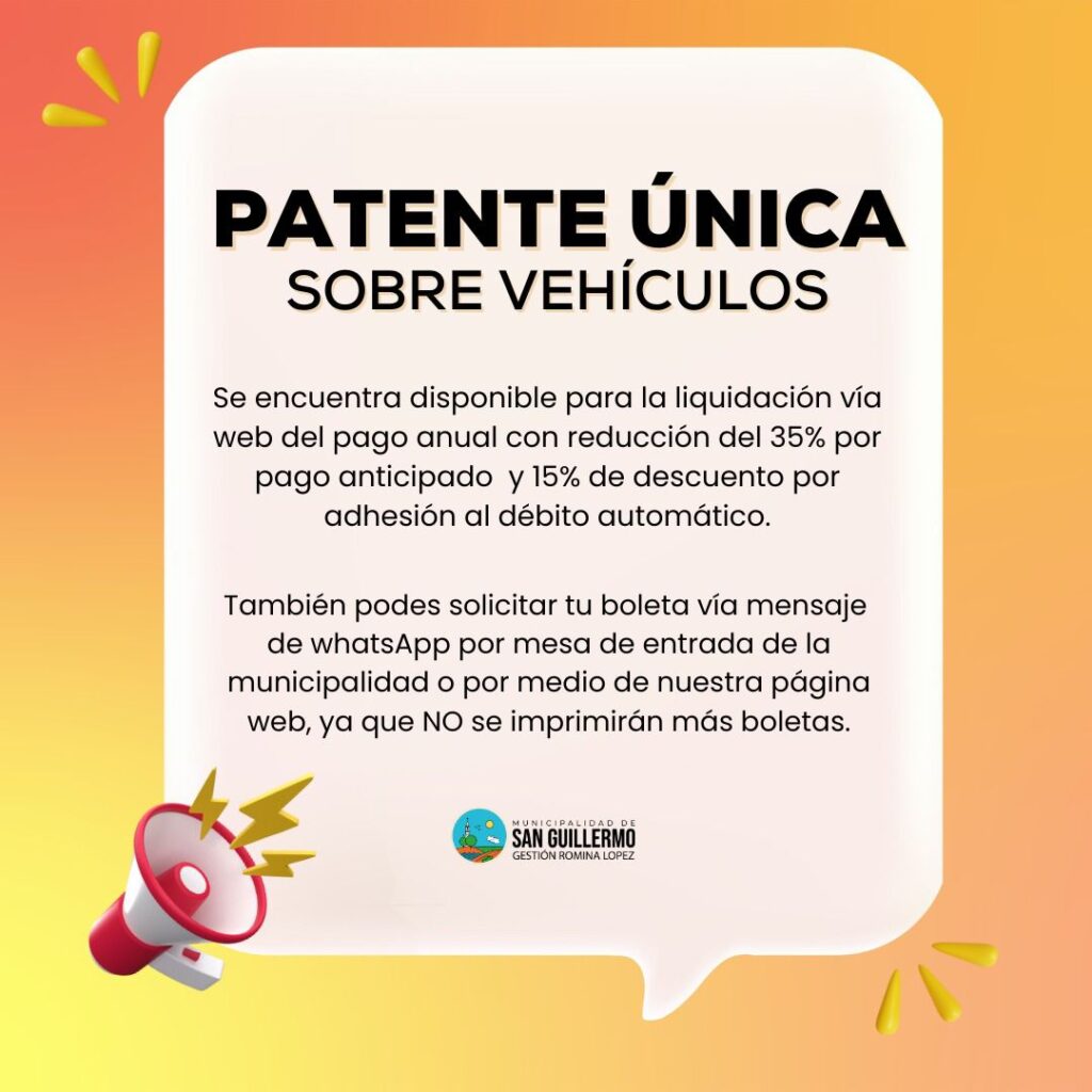 La Municipalidad recuerda que las boletas de patente ya no se imprimen respondiendo así al objetivo de Municipio verde en lo que tiene que ver con la reducción de la contaminación ambiental. Por esto mismo, recuerda a los propietarios de bienes muebles que se encuentran disponibles los sistemas digitales para el pago de las patentes.