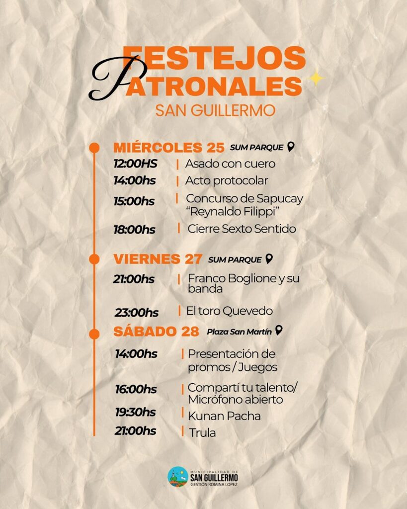 El próximo 25 de Junio se conmemoran 131 años de la funación de la Ciudad de San Guillermo y el calendario está lleno de actividades para toda la familia.