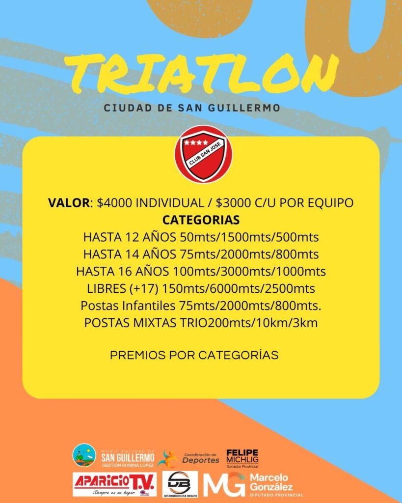 El próximo domingo 9 de marzo a las 14 horas comenzarán las inscripciones al gran triatlón organizado por atletismo del Club San Jose, que se desarrollará en el Parque Municipal Alfonsina Storni.