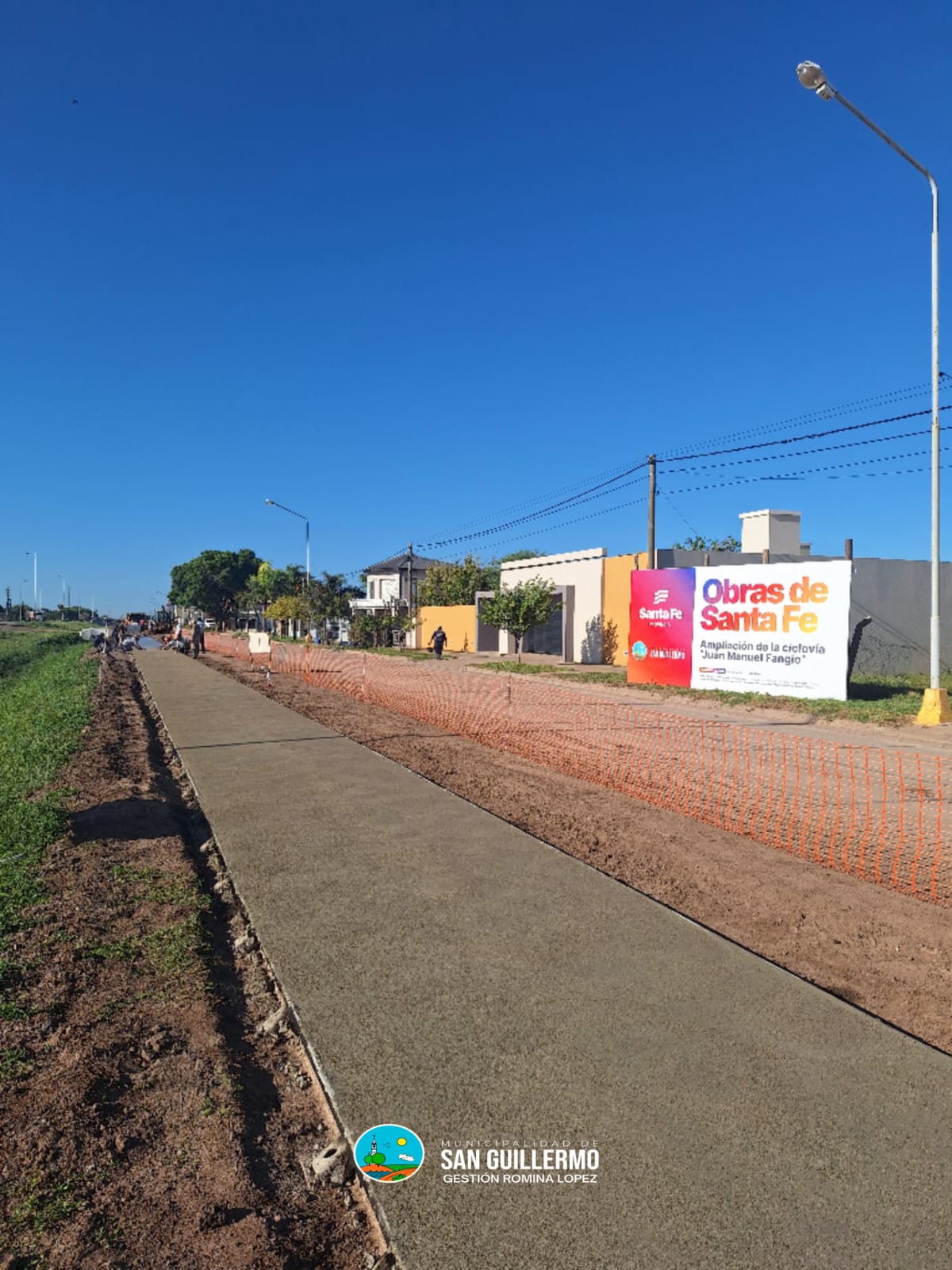 El tramo de la ciclovía que recorre el ala sur de la ciudad, al borde de la calle Santa Fe y al pie de la ruta 20 y que comienza en avenida San Martin para Finalizar en Ángela de la Casa, ya se encuentra avanzada hasta la calle Almirante Brown.