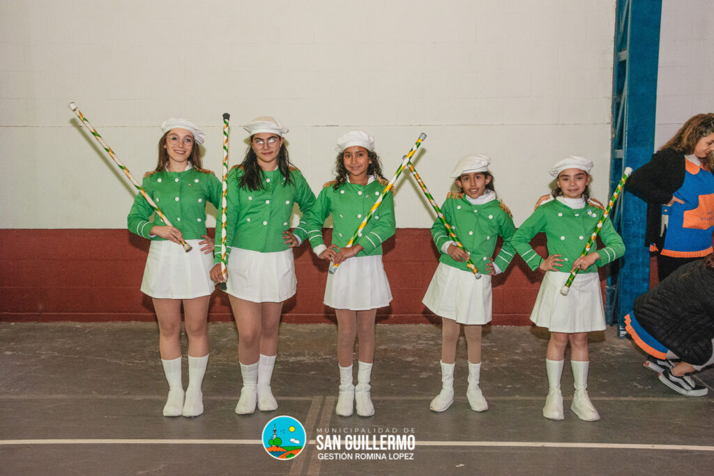 Esa tarde brillaron sobre el escenario luciendo los colores de la bandera, el grupo de bastoneras que se entrenan cada semana para dar un show inolvidable a la ciudad. Luego se presentó la banda oriunda de nuestra localidad Sexto sentido que hizo vibrar a cada uno de los sanguillerminos con un esplendor de emociones envestidas en un repertorio de sus mejores canciones.
