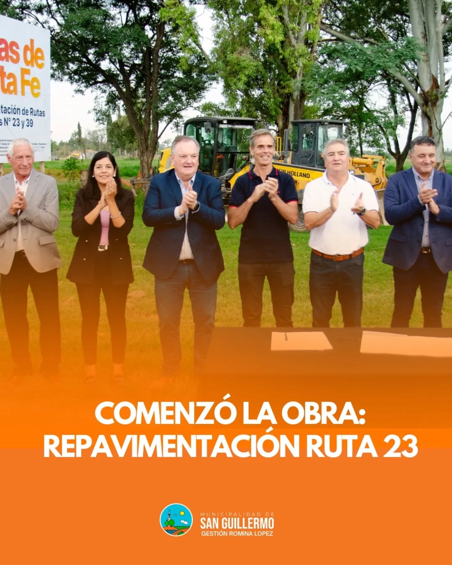 Otra obra histórica se inició en la Ruta Provincial número 23 que beneficiará no solo a los sanguillerminos, sino a toda la región. Se rtata de la repavimentación de la ruta que atraviesa San Guilermo y por donde circulas miles de vehículos diariamente de todo tipo: tránsito pesado, maquinaria agrícula y particulares. Por esto mismo, el deterioro del pavimento se ve perjudicado.